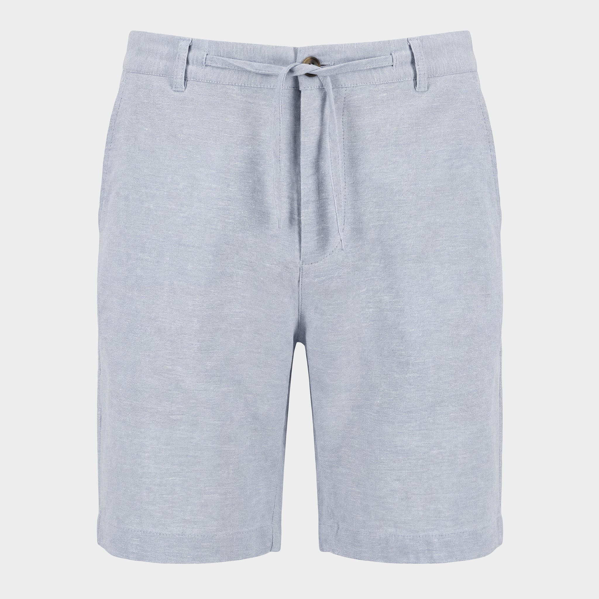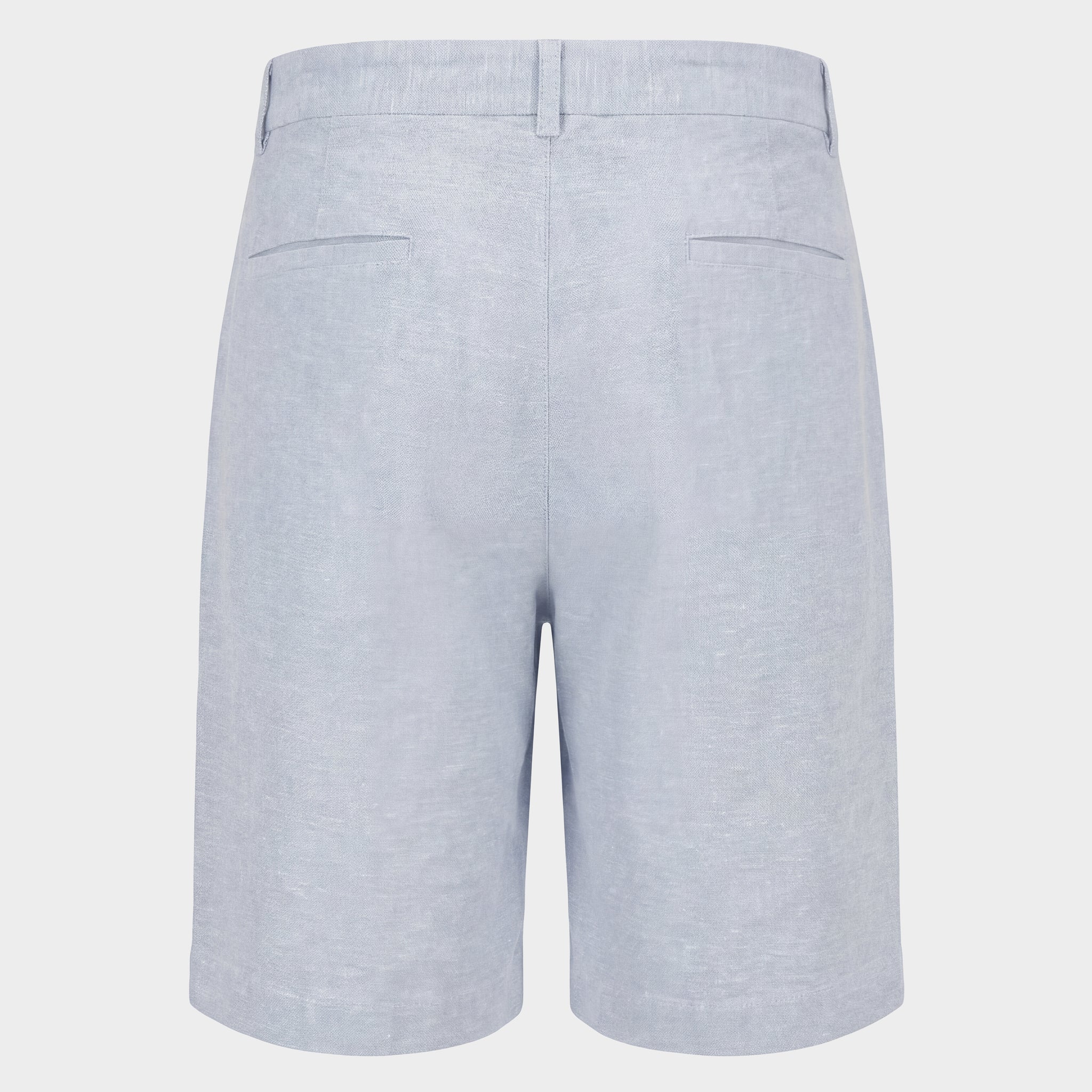 Bermuda de corte relajado confeccionada en mezcla de lino y algodón, una combinación ligera y transpirable ideal para climas cálidos. Cuenta con pretina con cintas ajustables que permiten un ajuste cómodo, además de bolsas laterales ocultas y bolsillos ribeteados en la parte trasera que aportan practicidad sin perder elegancia. El diseño se distingue por su tono Ashley Blue, que añade un toque distintivo y sofisticado. Perfecta para días de playa, vacaciones o looks casuales de verano con estilo.