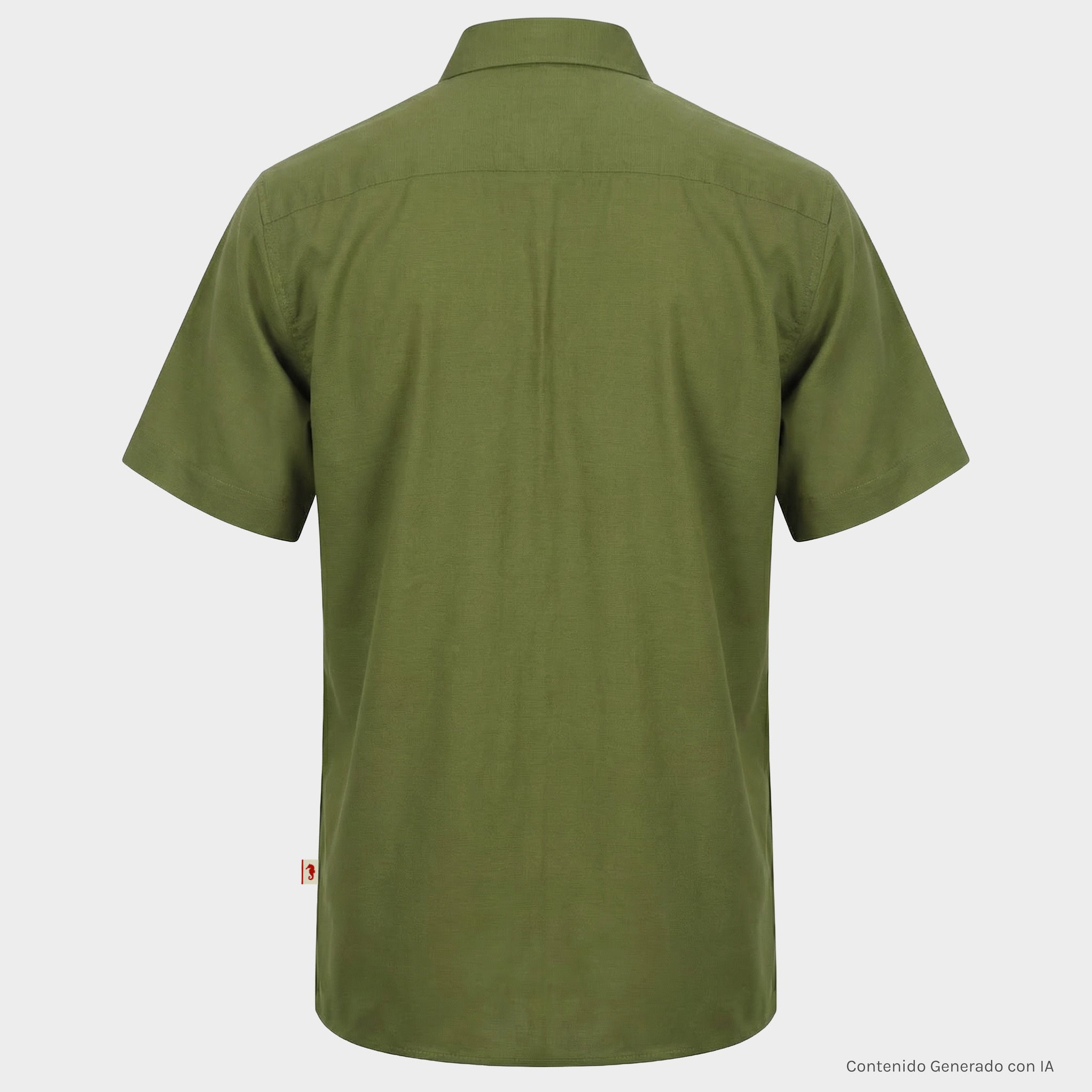 Camisa tipo guayabera de manga corta en un tono verde con bordado a tono. Esta prenda combina una paleta natural con un diseño clásico que proyecta serenidad, madurez y estilo con personalidad, ideal para quienes buscan destacar con elegancia sin llamar la atención de forma estridente.